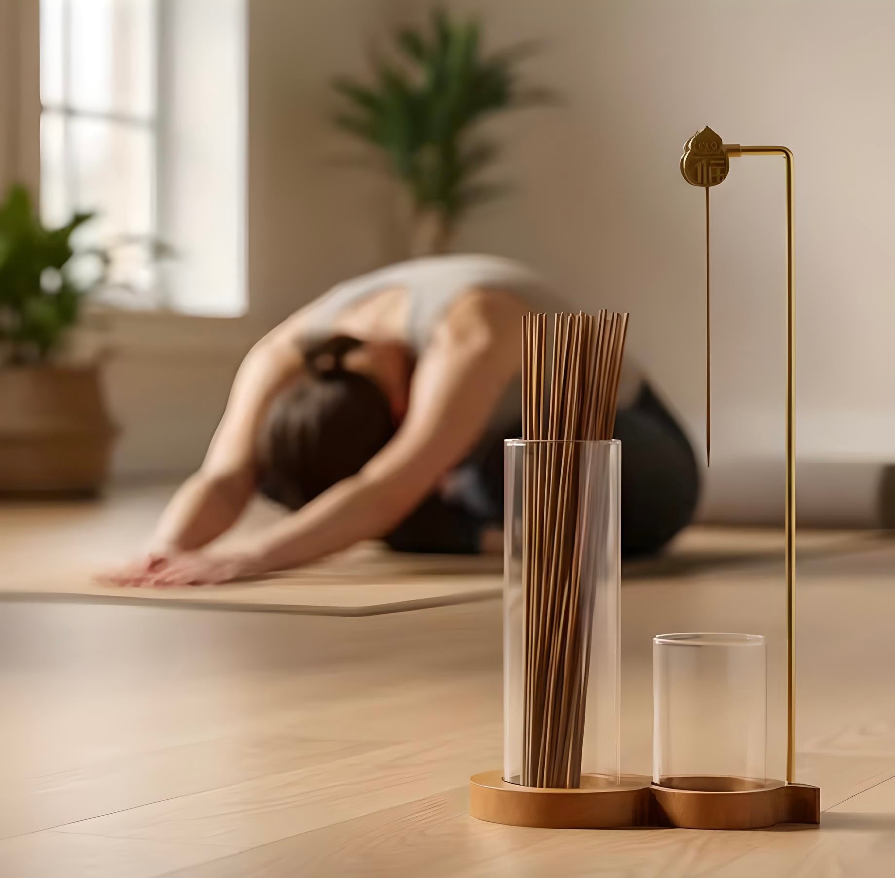 Er verfügt über eine ästhetisch ansprechende 8-förmige Holzbasis, die jedem Raum nicht nur einen Hauch von Eleganz verleiht, sondern auch einem praktischen Zweck dient. Der Boden ist so gefertigt, dass er zwei Glasbecher in verschiedenen Höhen hält, wodurch er perfekt für die Organisation und Präsentation Ihrer Räucherstäbchen und zum mühelosen Auffangen von Asche ist.