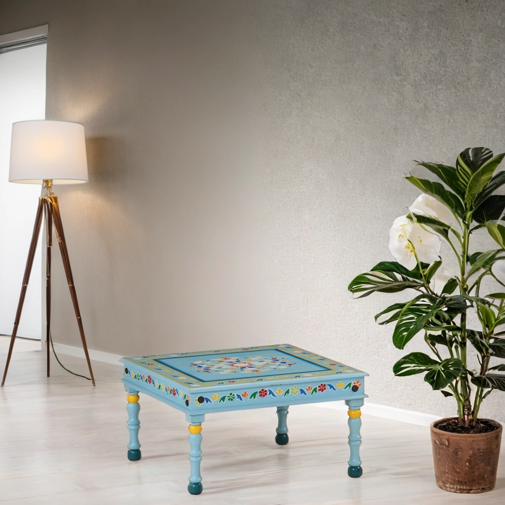 Der Essaouira Couchtisch aus Massivholz mit reichen handgemalten Verzierungen ist ein echter Blickfang für dein Wohnzimmer.