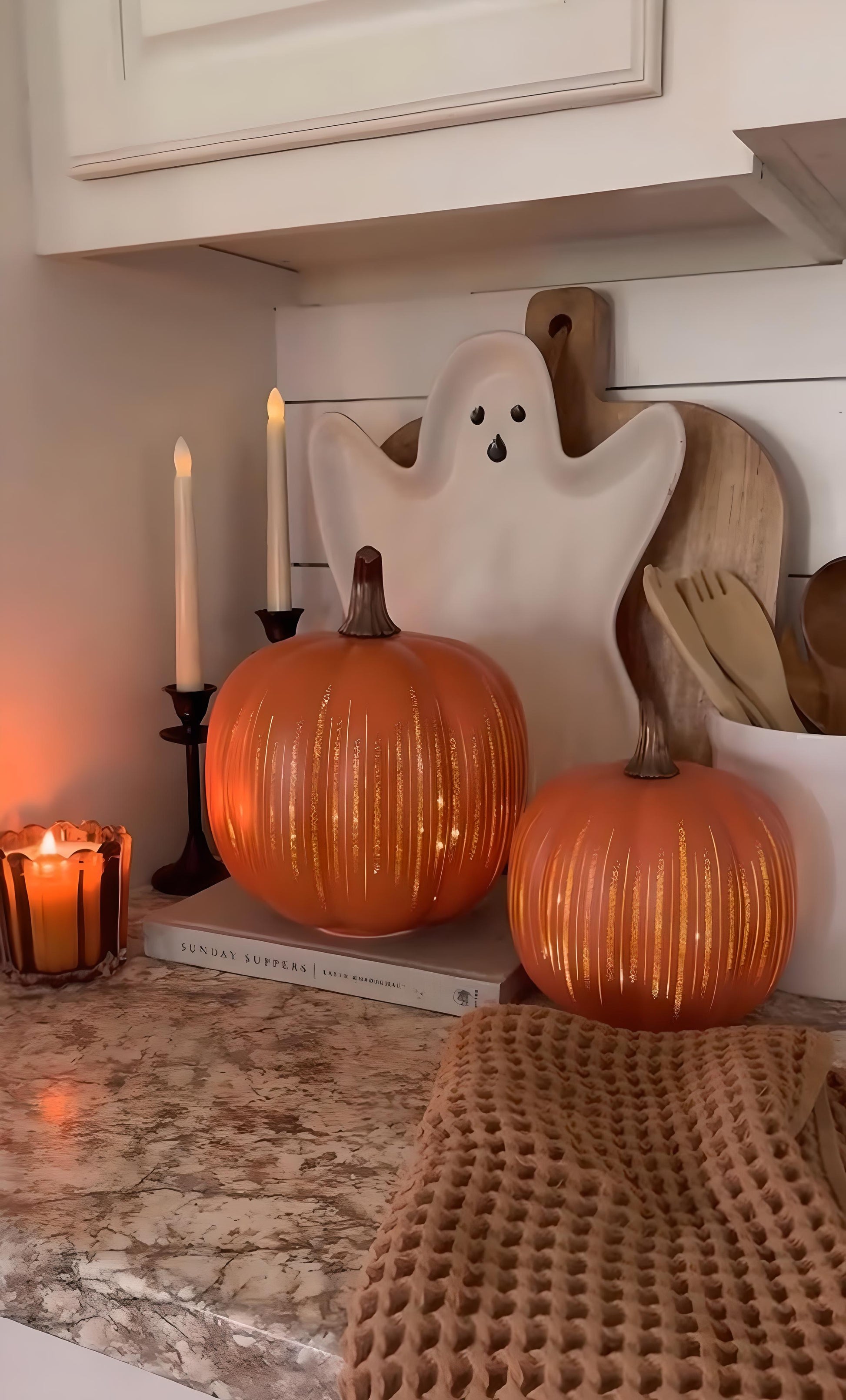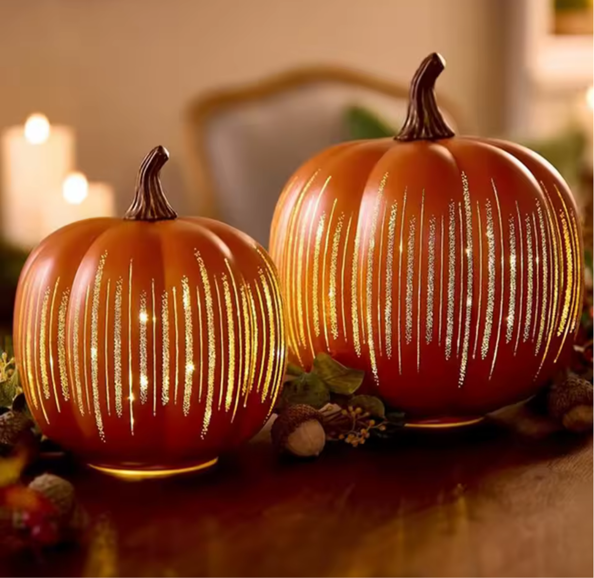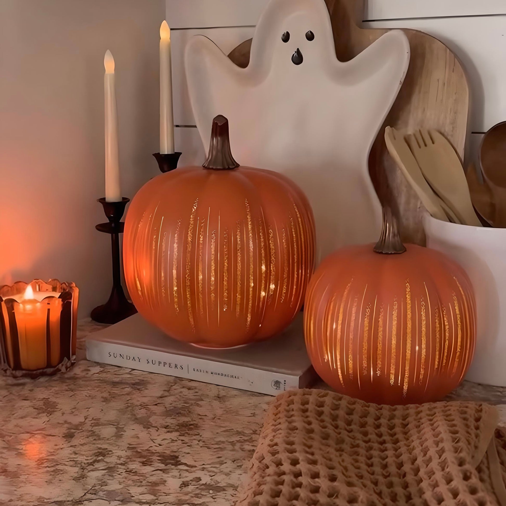 Diesen Herbst verzauberst du dein Zuhause mit diesen traumhaft schönen LED-Leuchtkürbissen! Beleuchte deinen Wohnraum mit unseren funkelnden LED-Leuchtkürbissen und bring den Herbst in dein Zuhause. Jeder LED-Leuchtkürbis ist batteriebetrieben und verzaubert mit seinem stilvollen Design, indem er sich perfekt in dein saisonales Dekor einfügt.
