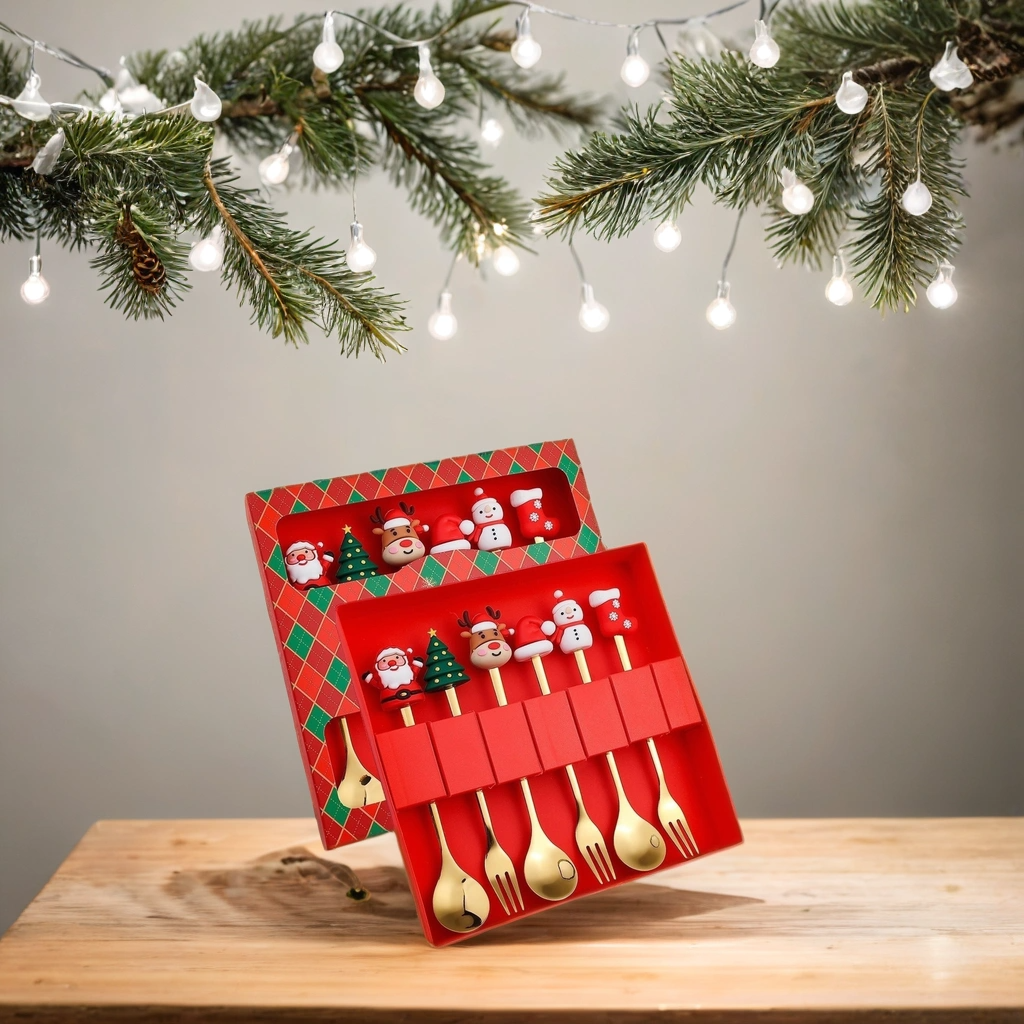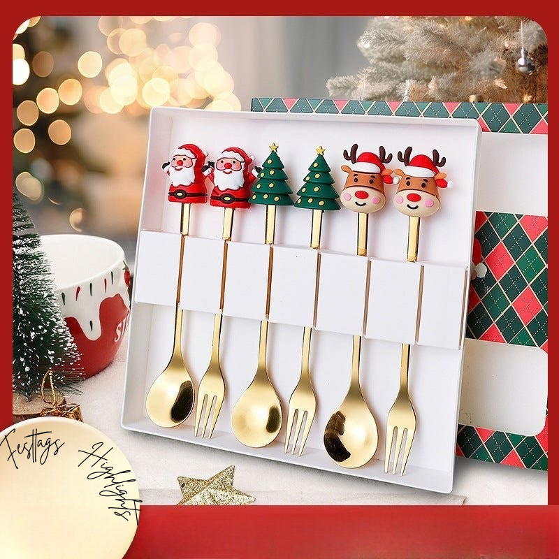 Die edlen, goldenen Löffel und Gabeln, verziert mit festlichen Details sind nicht nur wunderschön, sondern auch ideal für genussvolle Momente. Dieses Besteck-Set sorgt für ein Lächeln und zaubert Weihnachtsfreude in jedes Zuhause.