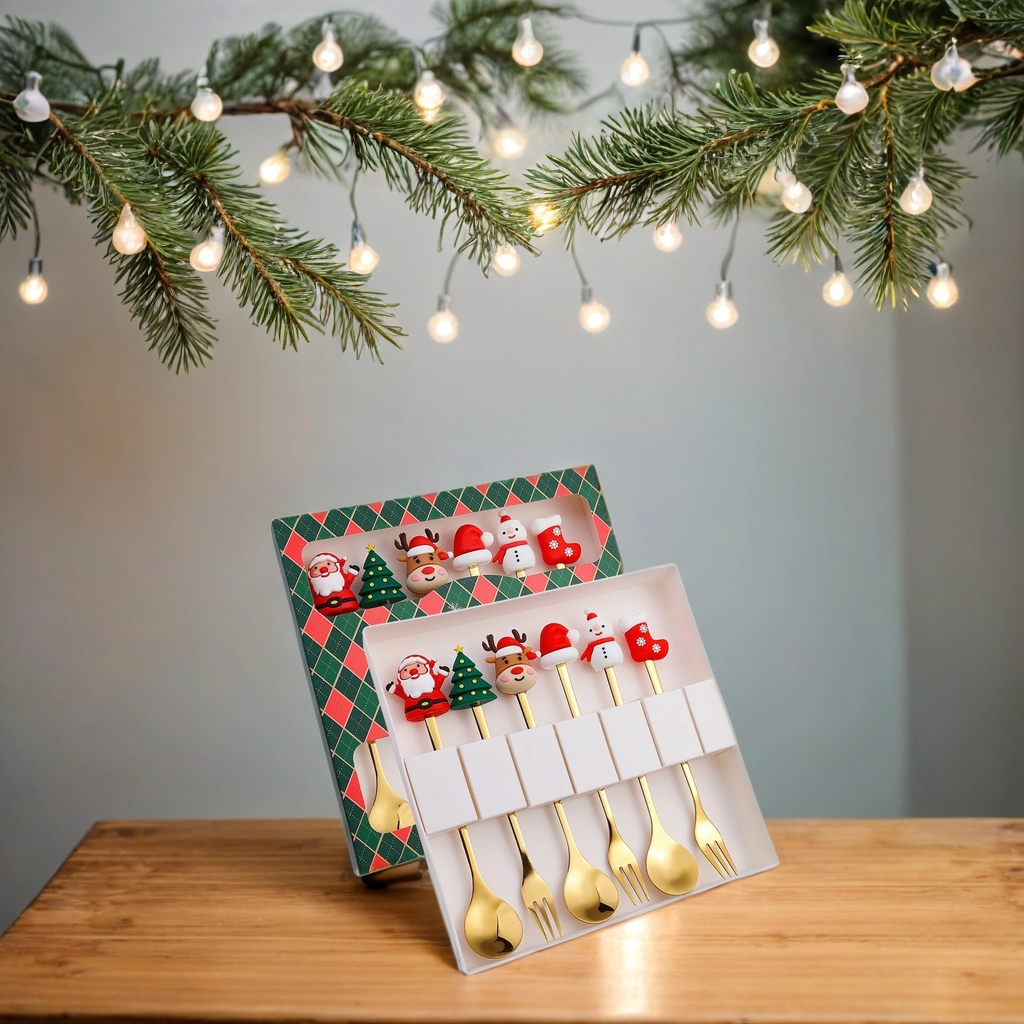 Bringen Sie festliche Magie und stimmungsvolle Eleganz auf Ihren Tisch mit dem Winterwunder Besteck-Set! Dieses charmante Set aus Dessertlöffeln und -Gabeln ist das perfekte Detail für die Feiertage - ein Muss für Kaffeetafeln, Dessertbuffets und festliche Abendessen. Ob als stilvolles Accessoire für Ihr eigenes Weihnachtsessen oder als Geschenk für Freunde und Familie – dieses Set begeistert mit Charme und Eleganz.